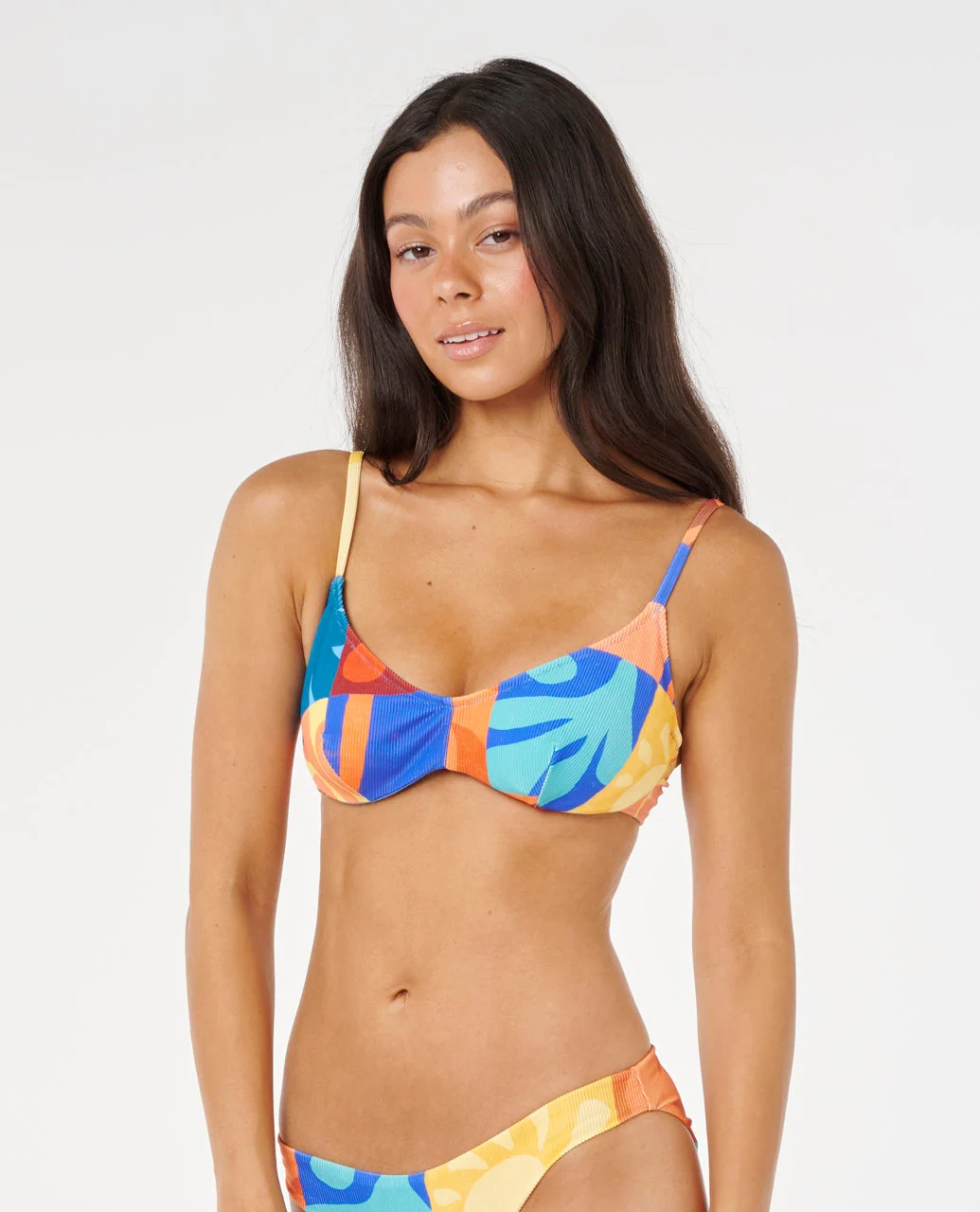 The Artist Of The Search - Ty Williams D-E Bikini Top offers good support with an underwire fit tailored to D-DD cups. Designed with textured rib, removable padding, and adjustable straps, it’s finished with a placement print and metal logo trim, delivering secure style for the lineup.