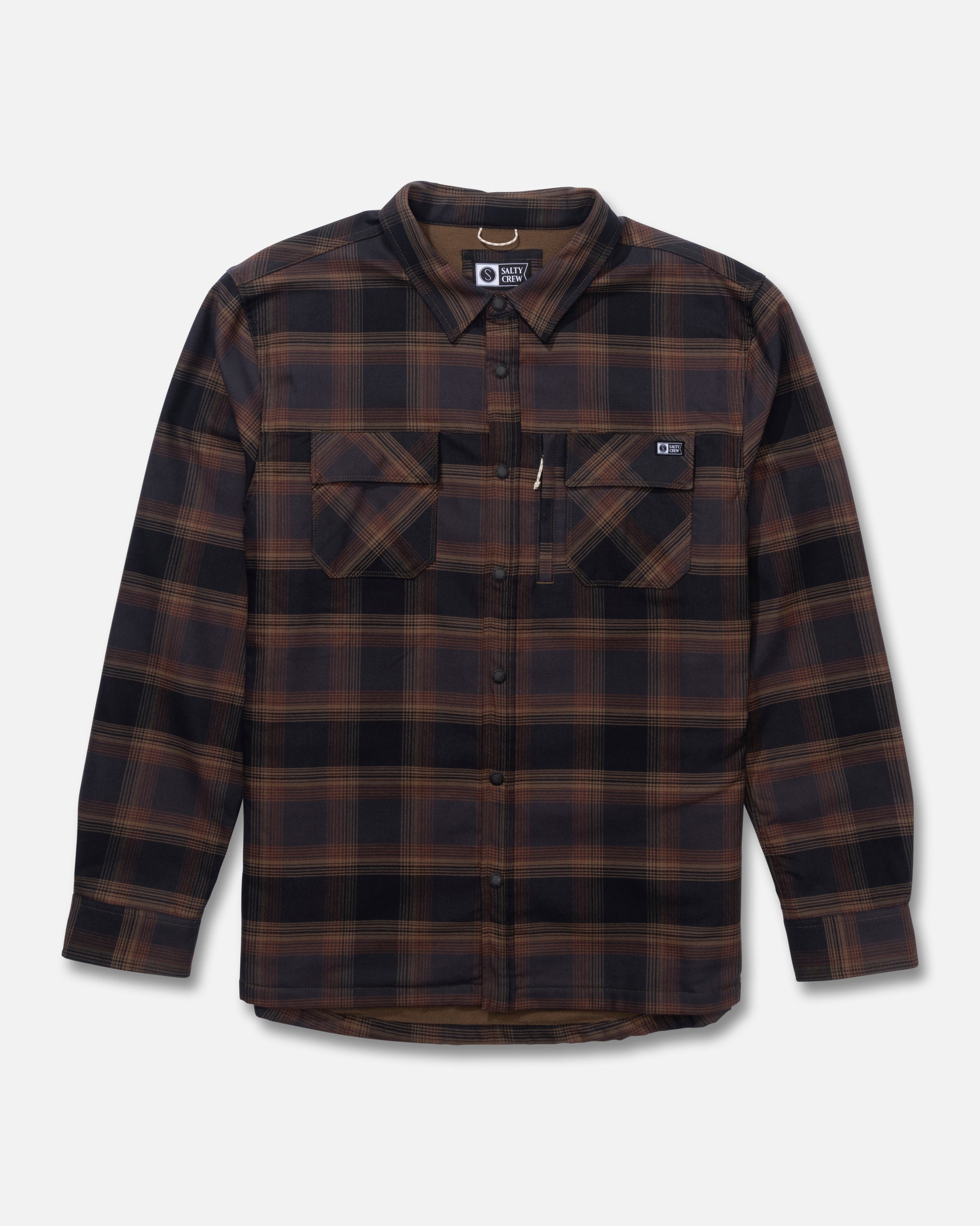 - Snap buttons at front placket and chest pockets