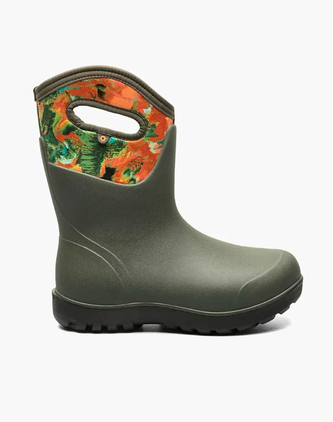 Experience superior performance with the Neo-Classic Wild Brush Women's Farm Boots, expertly crafted by BOGS. These boots are designed to be 30% lighter while maintaining 100% toughness, making them ideal for demanding farm work. The Dark Green Multi color offers a stylish touch to this durable footwear.